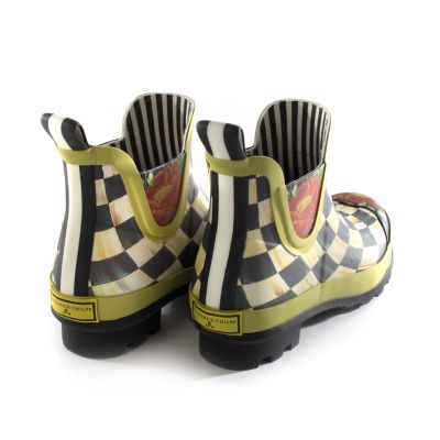 Adventure awaits, whether you’re in the garden or on the go, traveling all kinds of terrains. With our Size 8Short Courtly Check® Rain Boots, you’ll kick up your heels in style. They’re the perfect pairing of fashion and function and are decorated with our Courtly Check® and Flower Market patterns on the outside and black and white stripe on the inside. Made of premium rubber with slip-resistant soles and a moisture-wicking lining, they easily pull on and off, thanks to a sturdy tab on the back.