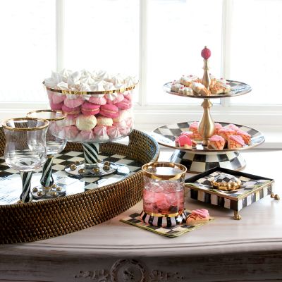An ample tray for breakfast in bed, a garden party or your personal carry-out, the Courtly Check® Enamel Party Tray begs no occasion, but suits casual and formal fetes alike. The invigorating juxtaposition of woven natural rattan and Courtly Checks® will serve in style. As handy as it is handsome, this entertaining tray is perfect for year-round use and just the excuse you needed host a long-overdue get-together. With a subtle jewel-tone palette woven by an artisan’s brush through the glossy, hand-painted, high-contrast checks, we’ve yet to find a color (or food!) that doesn’t look good with Courtly Check.