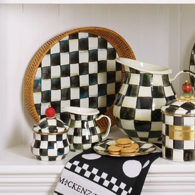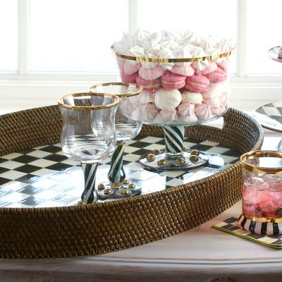 The only thing breezier than a cool cocktail on the screened porch as the summer sun sets, is one served on our Large Courtly Check® Rattan Tray. The invigorating juxtaposition of woven natural rattan against our signature Courtly Checks® hand-painted onto a sturdy steel base is just the garnish your favorite drink needs. Handy as it is handsome, this entertaining tray is perfect for year-round use, indoors and out. With a subtle jewel-tone palette woven by an artisan’s brush through the glossy, hand-painted, high-contrast checks, we’ve yet to find a color (or food!) that doesn’t look good with Courtly Check.
