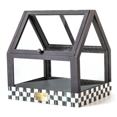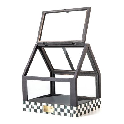 Cityside or countryside, you can have a tabletop garden with this wood and glass Courtly Check® Terrarium, accented with our MC logo and Courtly Check on the base. The hinged top lifts to tend to your plants.