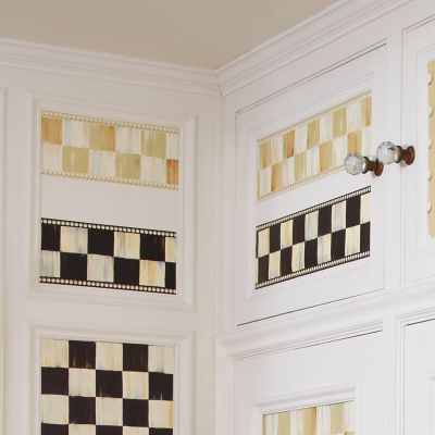 Add a dash of MacKenzie-Childs style to a living room accent wall, redo the border in your kitchen to match your Courtly Check® collection, or wake up the bathroom or bedroom with our Courtly Check® Wallpaper Border. Unpasted, washable, strippable, acrylic-coated paper. Made in the U.S. Sample swatches available; contact Customer Service at [email protected].