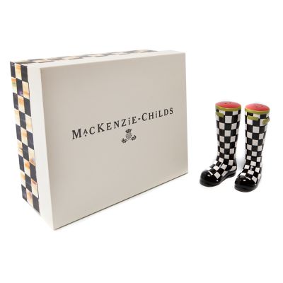 Sure to make your table fresh and fun, the hand-painted ceramic Courtly Check® Wellies Salt & Pepper Set features a pair of checked boots with chartreuse accents that hold salt and pepper. Presented in a beautiful gift box, it makes an ideal gift for the salt and pepper shaker collector, who might also happen to be your favorite hostess or host.