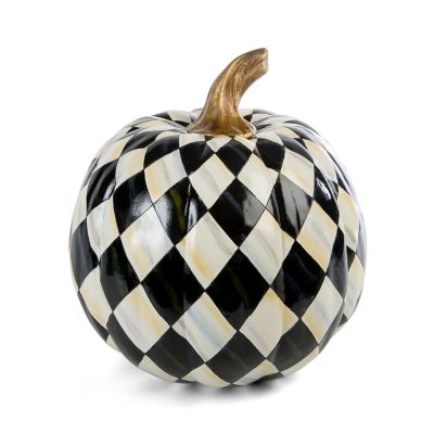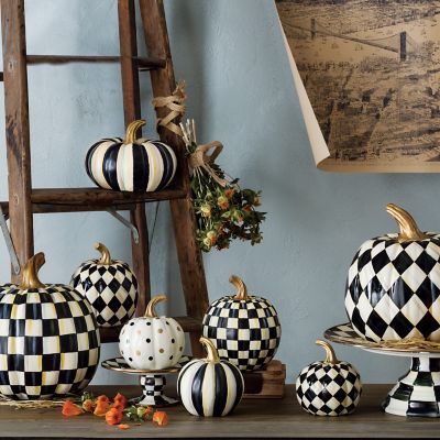 Harvest some style from our extraordinary pumpkin patch. Our playful patterns invite you to mix and match, creating a presentation of checks, dots, and stripes that’s uniquely yours. The Medium Courtly Harlequin Pumpkin turns our beloved Courtly Check® into color-dragged harlequin diamonds, topped with a golden stem.