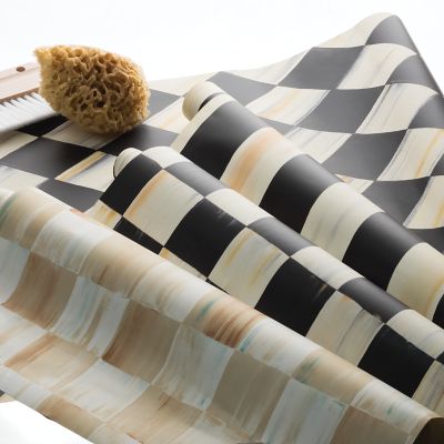 Add a dash of MacKenzie-Childs style to a living room accent wall, redo your kitchen to match your Courtly Check® collection, or wake up the bathroom or bedroom with Courtly Harlequin Wallpaper. Unpasted, acrylic-coated paper is sourced from renewable-resource forests and printed using environmentally friendly water-based inks. Sample swatches available; contact Customer Service at [email protected].