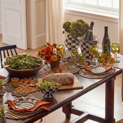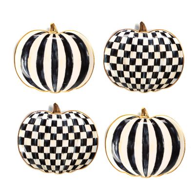 Cast a spell of whimsy on your tabletops for Halloween and beyond with our set of four ceramic Courtly Pumpkin Plates. There are two designs, featuring hand-painted Courtly Check® and Courtly Stripe, accented with gold lustre.