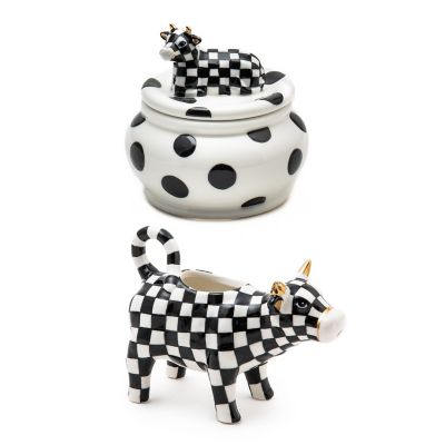 On our farm, we’re inspired by everything around us, including our barnyard buddies. The Cow Creamery Sugar Bowl and Creamer set pay homage to that, with a ceramic cow, painted with checks and trimmed in gold lustre. Ready to hold sugar and cream, of course, but also just to add a farm-fresh touch to your homestead.