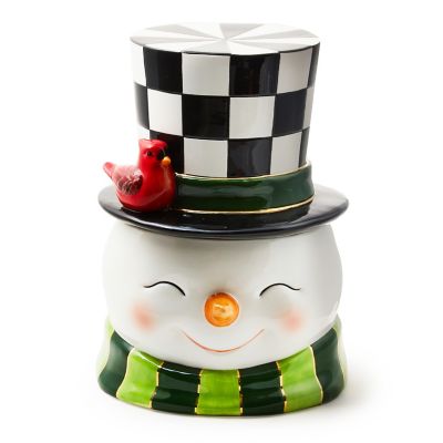 Bake holiday spirits bright with this hand-painted snowman cookie jar. Made of ceramic, the snowman’s top hat lifts to hold cookies and other treats inside. It makes a great gift, too, especially when filled with tasty treats.