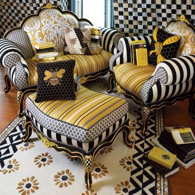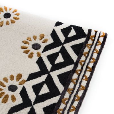 The 5′ x 8′ Crazy Daisy Rug takes simple patterns and presents them with panache. This hand-tufted, wool-blend rug features a center of daisies with a border of bold zigzags, sculpted to add a dimensional quality to the design. It’s the perfect complement to our collection of Dotography furniture, which takes classic black and white beyond basic with glamorous details.