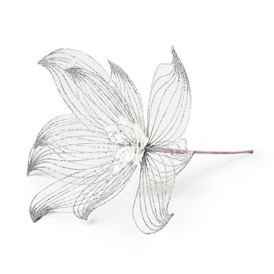 Accent holiday arrangements, wreaths, and more with this wintry jumbo-sized everlasting flower stem. It features glitter-trimmed wire petals that surround a Sterling Check® blossom in the center.