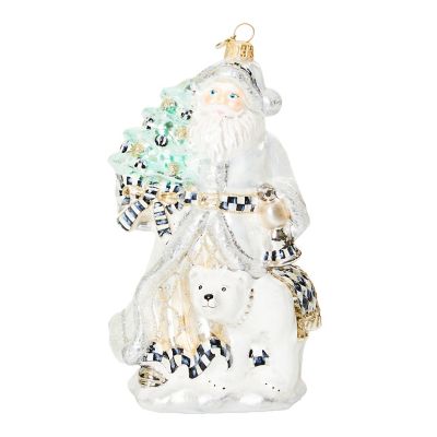 Add to the memories year after year with our collection of beautiful glass ornaments that are mouth-blown and hand-painted in Eastern Europe by some of the world’s most talented glass artisans. This glass ornament features a wintry Santa and a polar bear, accented with Courtly Check®. It’s presented in a keepsake gift/storage box.