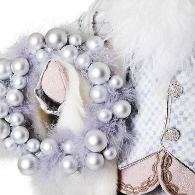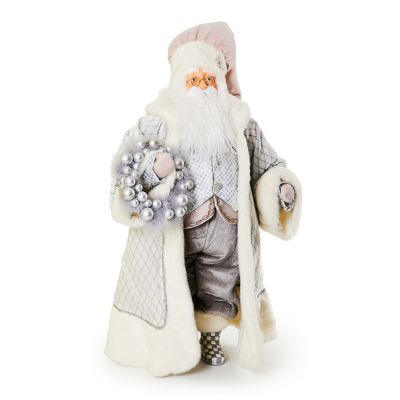 This wintry Santa with staff is a handmade delight, brimming with details from head to toe. Holding a feather wreath, he’s wearing a white brocade coat accented with faux fur, Sterling Check® boots, and a pink stocking cap. Place this special figure in a spot near the mantel or in the entry to get all the attention it deserves.