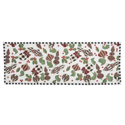 Deck your holiday table with this entirely beaded table runner, featuring our Deck the Halls pattern of ornaments on a background of holly leaves and trimmed with a striped border.
