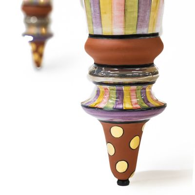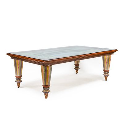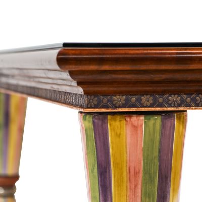 Seated at our Diorama Dining Table for 6, guests are treated to a three-dimensional bird’s eye view of Cayuga Lake and the farmlands that surround our studio. The “diorama,” hand-painted by our artisans on three wood layers, is protected by a clear glass top and framed in hand-finished cherry wood. The table rests on hand-glazed, hand-painted ceramic legs, also made here on the farm. Allow 16 weeks for delivery of this meticulously crafted masterwork.
