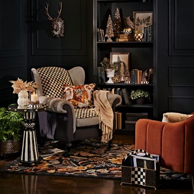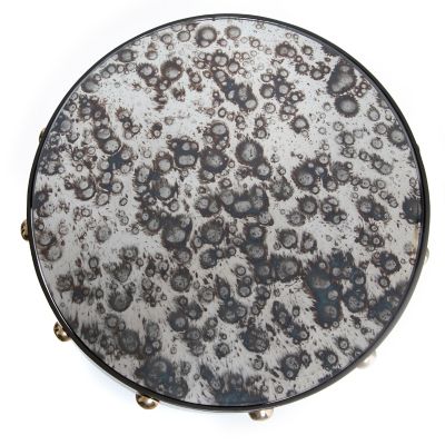 Our Dotography collection of furniture takes the classic simplicity of black and white way beyond basic with glamorous details. The Dotography Accent Table is pure glam with a mirrored top finished to mimic antique mercury glass with brass-finished domes around the rim. The ceramic column base, featuring Courtly Stripe and gold and platinum lustre, is hand-painted by our artisans in Aurora, New York.