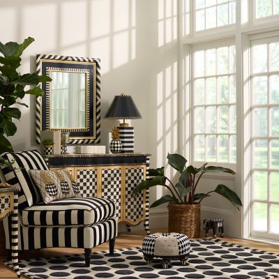 This 100% wool, 8′ x 10′ rug connects the dots (literally)! It’s tufted and sheared, with foil printing applied to the low circles that outline each dot.
