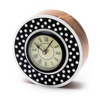 Make time for sophisticated style. The Dotty Round Clock is simple and chic, with a dotted resin front and sides of stained acacia wood. Perfect for the desk, tabletop, or any spot where you want to stylishly mind your minutes.
