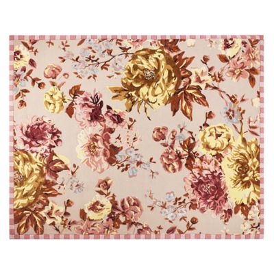 This wool-blend 8′ x 10′ rug is always in full bloom, featuring sheared roses in muted hues of pink, ivory, and tan on a looped background and trimmed with a border of tonal pink checks that are looped and sheared for added dimension.