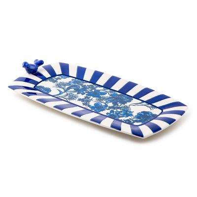 From spectacular side dishes to delicious desserts, serve so many things on this ceramic serving platter. Decorated with blue floral transfers, it’s embellished with a ceramic blue bird and trimmed with hand-painted blue stripes.