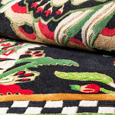 The wool-blend 5′ × 8′ Evenfall Rug makes a dark and dramatic statement in any interior, featuring a tufted and sculpted paisley pattern that’s finished with a checked border.