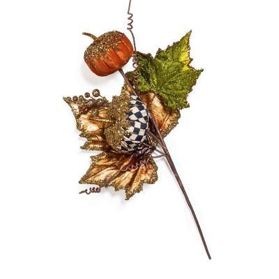 Add a bit of autumn to wreaths and arrangements with this sparkling pick, featuring maple leaves in gold and green, edged in glitter, and accented with Courtly Check® pumpkins.