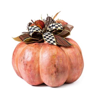 Harvest style fresh from our extraordinary pumpkin patch with this large terra cotta-finish pumpkin, embellished with everlasting leaves, seedpods, pinecones, and Courtly Check® ribbon.