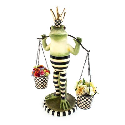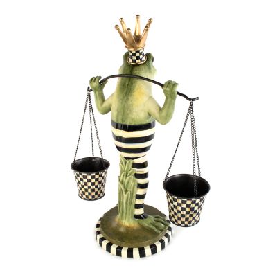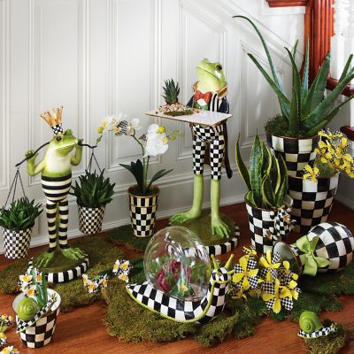 Here on the Farm, we’re quite fond of the amphibian ambassadors that inhabit our pond and endlessly inspire our designs. The hand-painted Fergal the Frog Double Plant Holder, attired in Courtly Striped pants and wearing a Courtly Check® crown, balances two tin buckets that are perfect for folding cut or faux flowers.