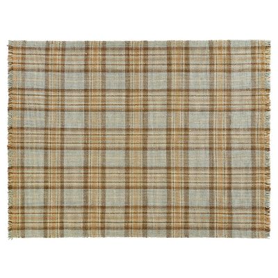This wool 8′ x 10′ rug features a woven tartan pattern that has a nubby texture. It’s finished with fringe on the ends.