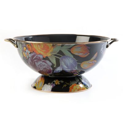 With a house full of single-purpose items, from the citrus zester to champagne flutes, it’s nice to add a versatile do-it-all piece to your kitchen and table. The dark and dramatic Black Flower Market Everything Bowl, right-sized for beverages on ice or orchard-picked apples, is a must-have for parties and for everyday use. Heavy-gauge, hand-glazed steel underbody with hand-applied fanciful botanical transfers that recall a lush English garden.