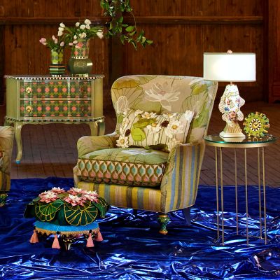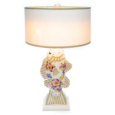 Our Flower Market Fish Table Lamp is the catch of the day! We’ve taken our hand-painted Flower Market Fish Vase, placed it on a wooden base, and topped it with a drum shade. A striped ceramic finial is the cherry on top.
