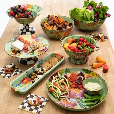 Give stainless steel’s impersonal style and plastic’s halfhearted work ethic the pink slip. There’s a new sous chef in town! For kitchen preparations with personality, look no further than the Large Green Flower Market Colander. Fill with veggies grown in your own garden or hand-picked strawberries for a pleasing hostess gift. Color-glazed in black, green or white, each enamel colander is decorated with hand-applied fanciful botanical transfer decorations that recall a lush English garden in the peak of summer.