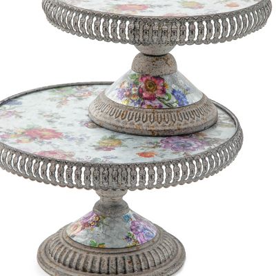 Display your plants with style on our set of two Flower Market Plant Stands. Made of galvanized metal, they feature a smooth top decorated with our Flower Market pattern atop a textured base, trimmed with embossed edging.
