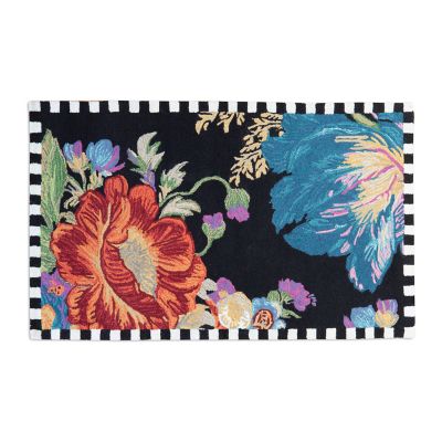 Our 3′ × 5′ Black Flower Market Reflections Rug is glorious color in 100% wool, fresh from an English country garden. Featuring a checked border, this hooked rug features a bee’s-eye view of our iconic Flower Market pattern.