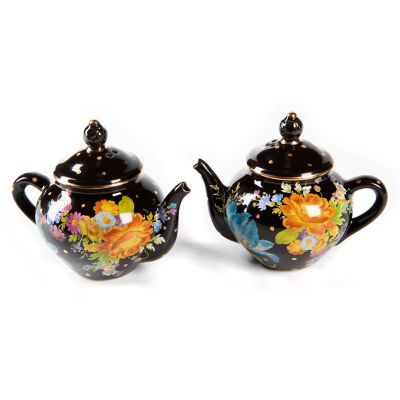 Flower Market Teapot Salt & Pepper Set – Black