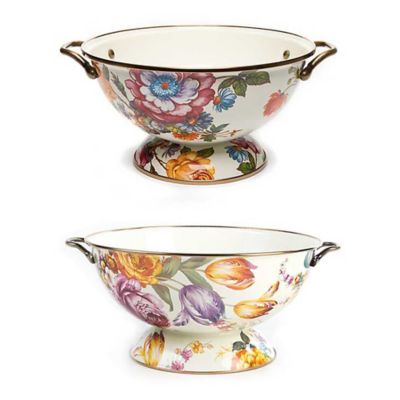 With a house full of single-purpose items, from the citrus zester to champagne flutes, it’s nice to add a versatile do-it-all piece to your kitchen and table. The dark and dramatic Flower Market Almost Everything Bowl, right-sized for beverages on ice or orchard-picked apples, is a must-have for parties and for everyday use. Heavy-gauge, hand-glazed steel underbody with hand-applied fanciful botanical transfers that recall a lush English garden.