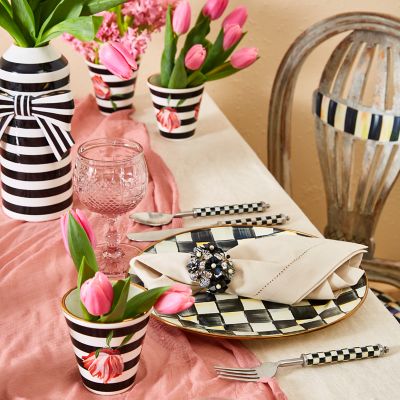 Good things come in three with our set of three ceramic Flower Show Posts. Featuring black horizontal stripes decorated with peony images and touches of gold lustre, they’re perfect for holding herbs in the kitchen or prettying up the home office, filled with pens and pencils.