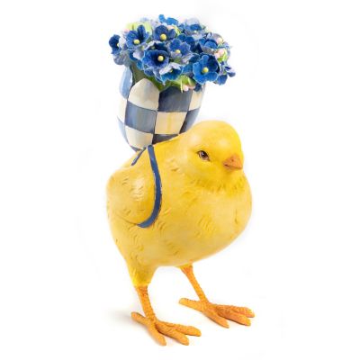 Our Forget-Me-Not Chick simply says springtime with a yellow chick carrying a hand-painted Royal Check egg, embellished with blue paper flowers.
