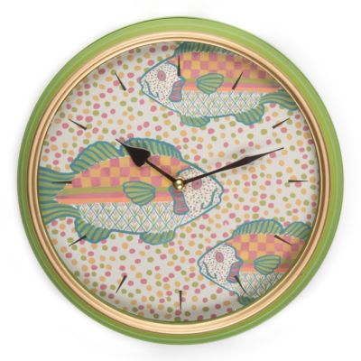 Sync your schedules to MacKenzie-Childs time. Our Freckle Fish Wall Clock adds a splash of style to your kitchen or a punch of personality to your boardroom. The face features our Freckle Fish, trimmed with chartreuse metal edging. It operates on one AA battery (not included).