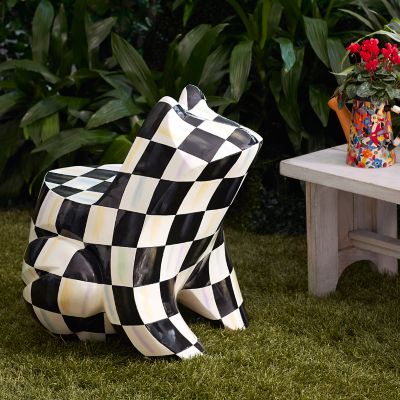 Looking for a place to lounge after your yoga session? Try our weather-resistant Frog Garden Seat, made of resin and hand-painted in Courtly Check®. Holds up to 220 pounds.