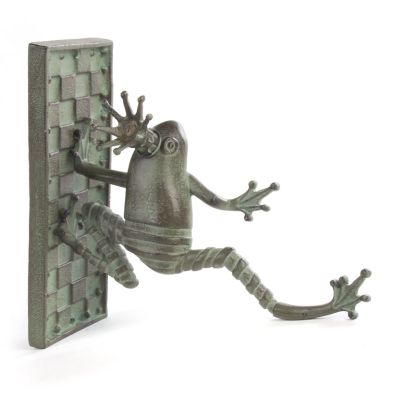 Here on the farm, the rhythmic lullaby of our lily pad philharmonic—the bullfrog bass line, the spring peeper’s twangy strum—is often interrupted by the kerplunk of a splashing soloist, reminding us that no creature embodies irreverent charm quite like the humble frog. That juxtaposition of subdued and silly inspired our Frog Garden Collection. Crafted of cast metal with a rustic green patina, these amphibian accessories let you bring the music of our home to yours. No need to go out on a limb to present your petunias—our Frog Plant Hanger is always “hoppy” to help (sorry, we couldn’t resist!). This cast metal character livens up a traditional porch—or bring the aquatic acrobat indoors to really make a splash.