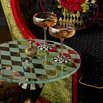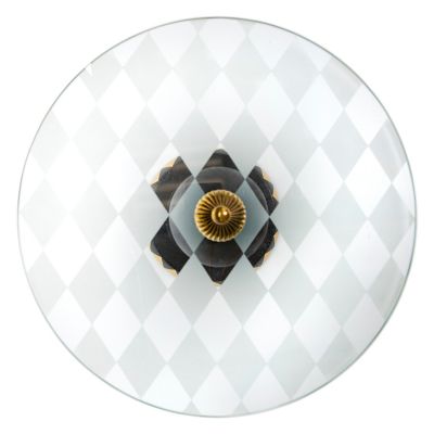 Our Gambit Accent Table makes a move for style anywhere it’s placed. Sporting a glass top etched with a harlequin pattern and accented with a brass finial, it sits on a mango wood base with an ebony finish. Our artisans in Aurora, New York, add embellishments that include hand-painted Courtly Stripe and gold leaf.