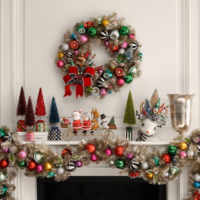 Add a note of nostalgia to the staircase with this illuminated silver garland, accented with shatter-resistant, vintage-inspired ornaments.