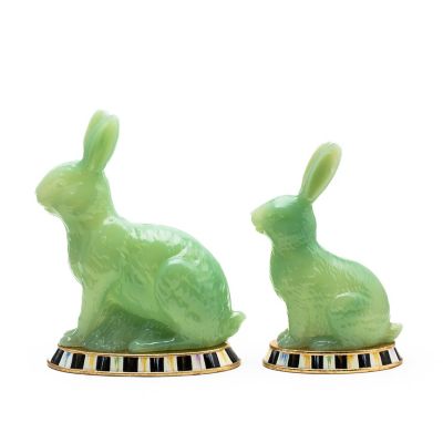 Inspired by vintage jadeite, our set of two all-resin Green Rabbit Figures shimmer like they’re glass, set on hand-painted Courtly Stripe bases, trimmed with roped gold foil. Perfect for the spring kitchen, of course, but you’ll want to display them year-round.