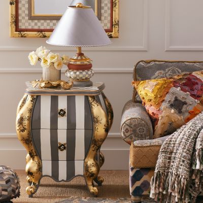 The Sterling Check® Groovy Table Lamp features our Aurora-made, hand-painted ceramic Groovy Canister sitting on beech base with a ceruse finish. It’s topped with a grey silk dupioni shade and crowned with a gold lustre finial.