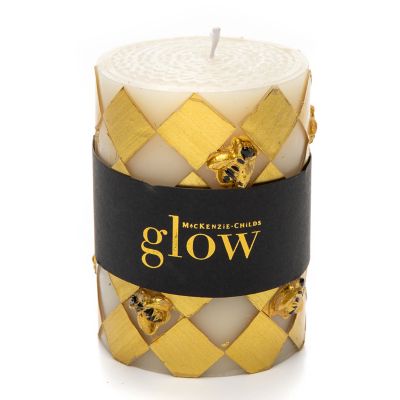 Harlequin Bee Pillar Candle – 4″ – Gold
