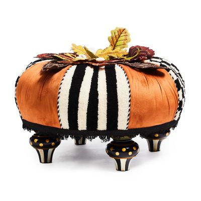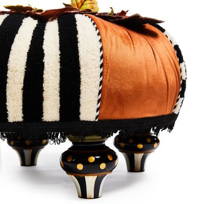 This fabulous footstool is more than just a place to rest your tired tootsies. It’s quite a work of art, too, with appliqued and embroidered leaves and acorns that can be molded into shape atop panels of chenille and velour fabric. Sitting on hand-painted wooden feet, it’s embellished with a velvet button in the center and trimmed with scalloped fringe.