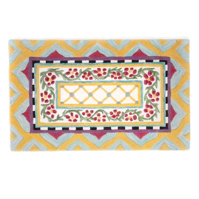 The 2’3″ x 3’9″ Hitchcock Field Rug features one of our classic Taylor ceramic patterns, bringing its color and charm to your floors. This wool-blend, hand-tufted rug is a mishmash of florals, scallops and stripes, and the pattern pays tribute to the vibrant colors of summer on our farm. More interest comes from the weaving technique, where the blossoms are sculpted slightly higher, adding a bit of dimension.
