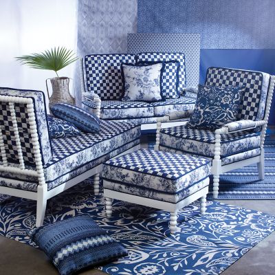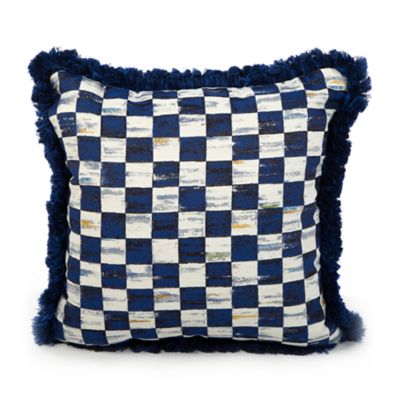Add a bit of extra comfort to our collection of Indigo Villa outdoor furniture. Our Indigo Villa Outdoor Accent Pillow is a generously sized throw pillow in Royal Checks done in a Sunbrella® fabric and trimmed with soft blue and black fringe.