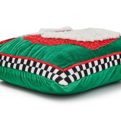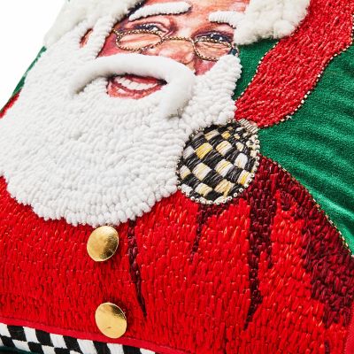 Add comfort and joy to your holiday home with this Black Santa throw pillow, featuring jolly old St. Nick embellished with chenille embroidery, with fleece and Courtly Check® on his cap. It’s trimmed with a stitched check border and backed with green velvet fabric.
