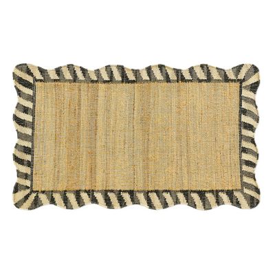 This 3′ x 5′ woven rug features a center of sustainable jute, bordered by a scalloped edge of black and white wool stripes. So versatile, it’s perfect for any room.