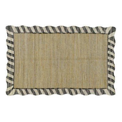 This 5′ x 8′ woven rug features a center of sustainable jute, bordered by a scalloped edge of black and white wool stripes. So versatile, it’s perfect for any room.